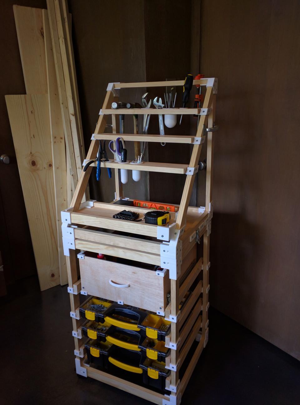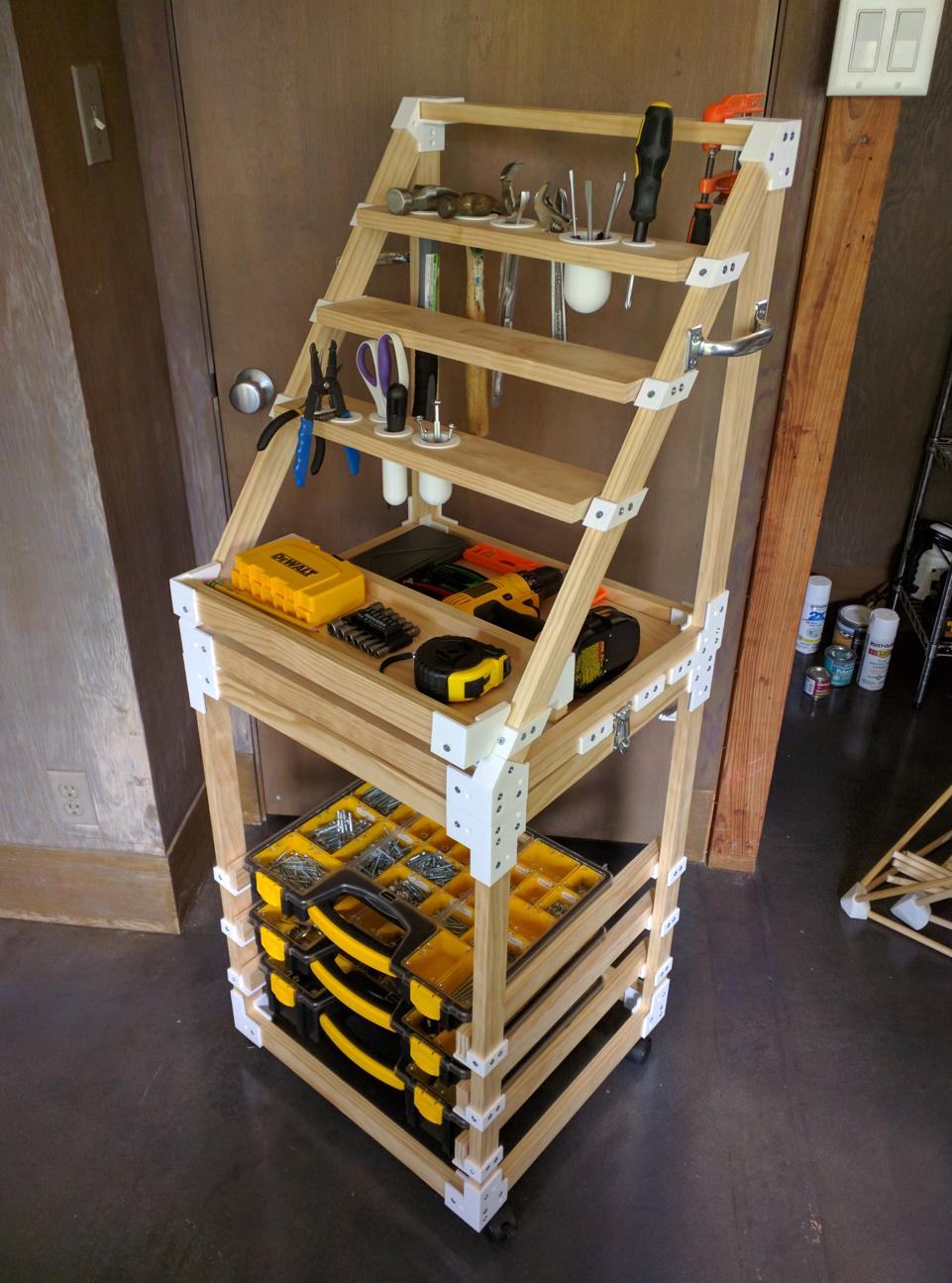 I've been wanting a tool cart with exposed tools ever since I saw Adam Savage's Tool Storage Stands, and it seemed like the perfect project to test the 3D printed joints I've been working on. As with many of my projects, this wasn't fully planned from the beginning, but rather evolved as I worked on it.