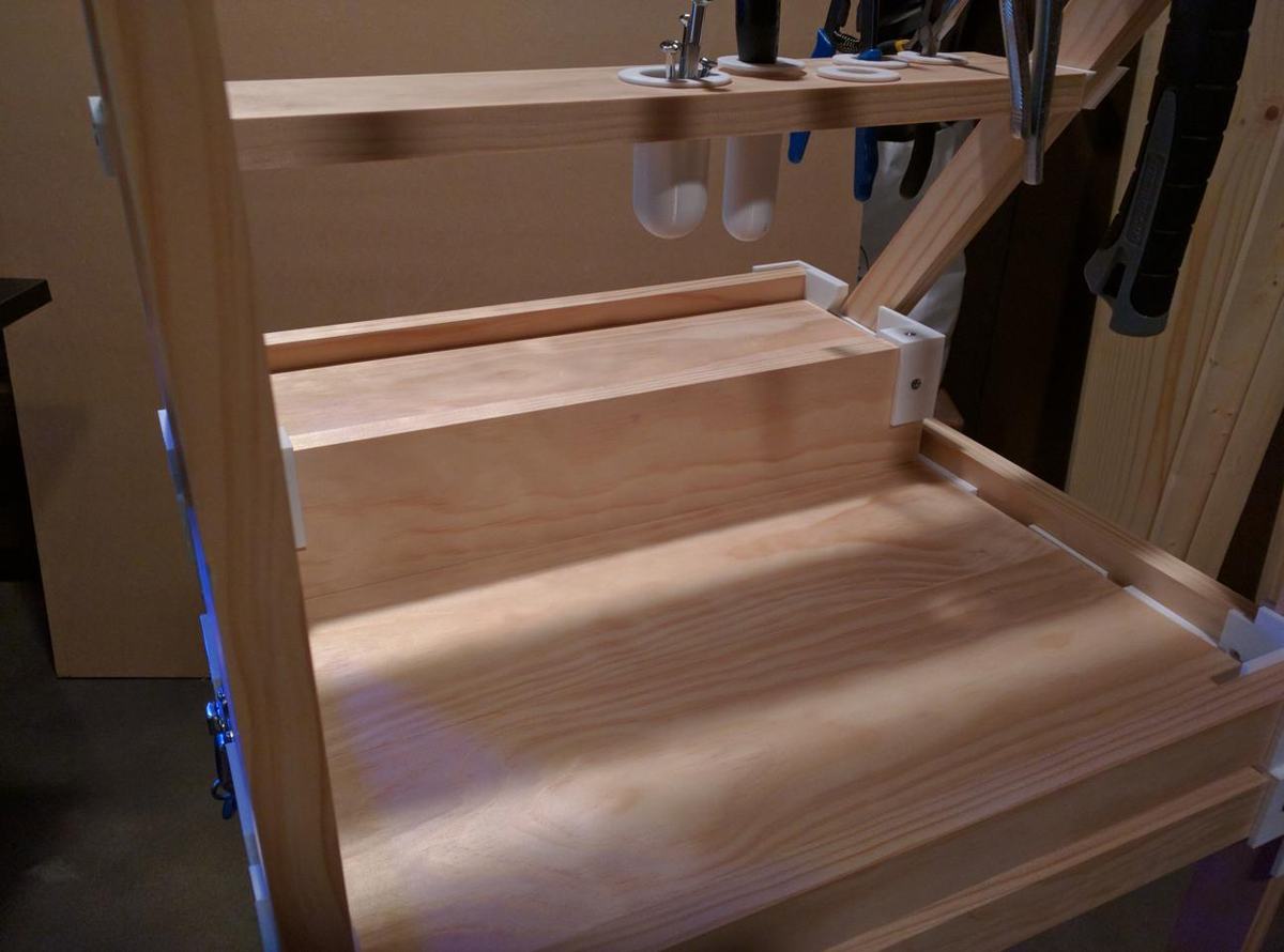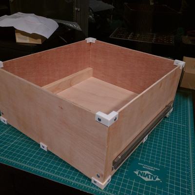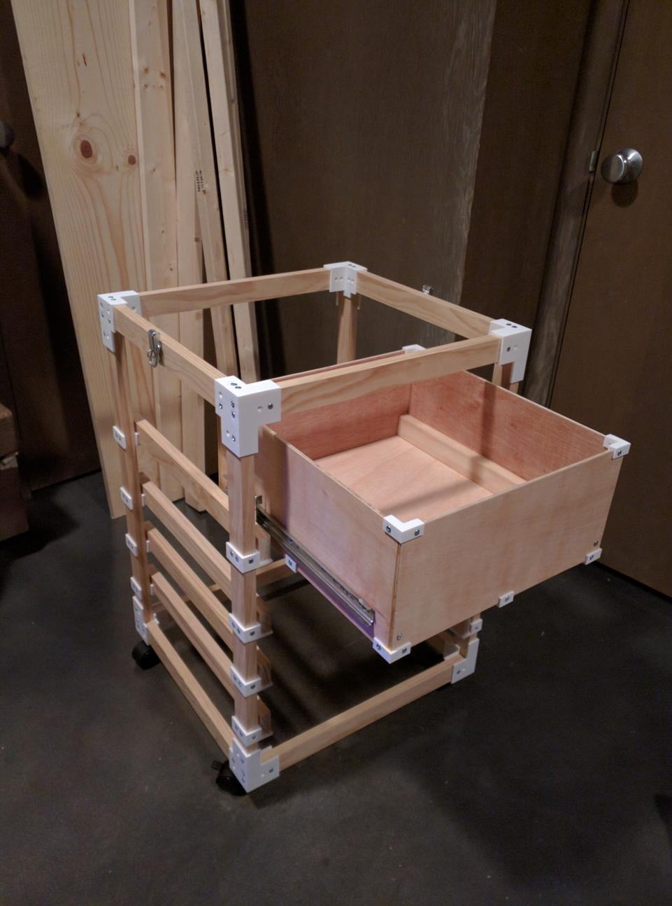 At this point I was pretty close to being finished, but I decided I wanted a drawer in the extra space in the bottom frame. Of course I had to build the drawer with 3D printed joints as well.